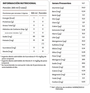 Gracias a su contenido natural de sodio, potasio, magnesio y otros minerales presentes de forma equilibrada, contribuye a mantener la función muscular, el equilibrio electrolítico y la activación del cuerpo. Su sabor suave y refrescante la hace ideal para el consumo diario, antes, durante o después del ejercicio.