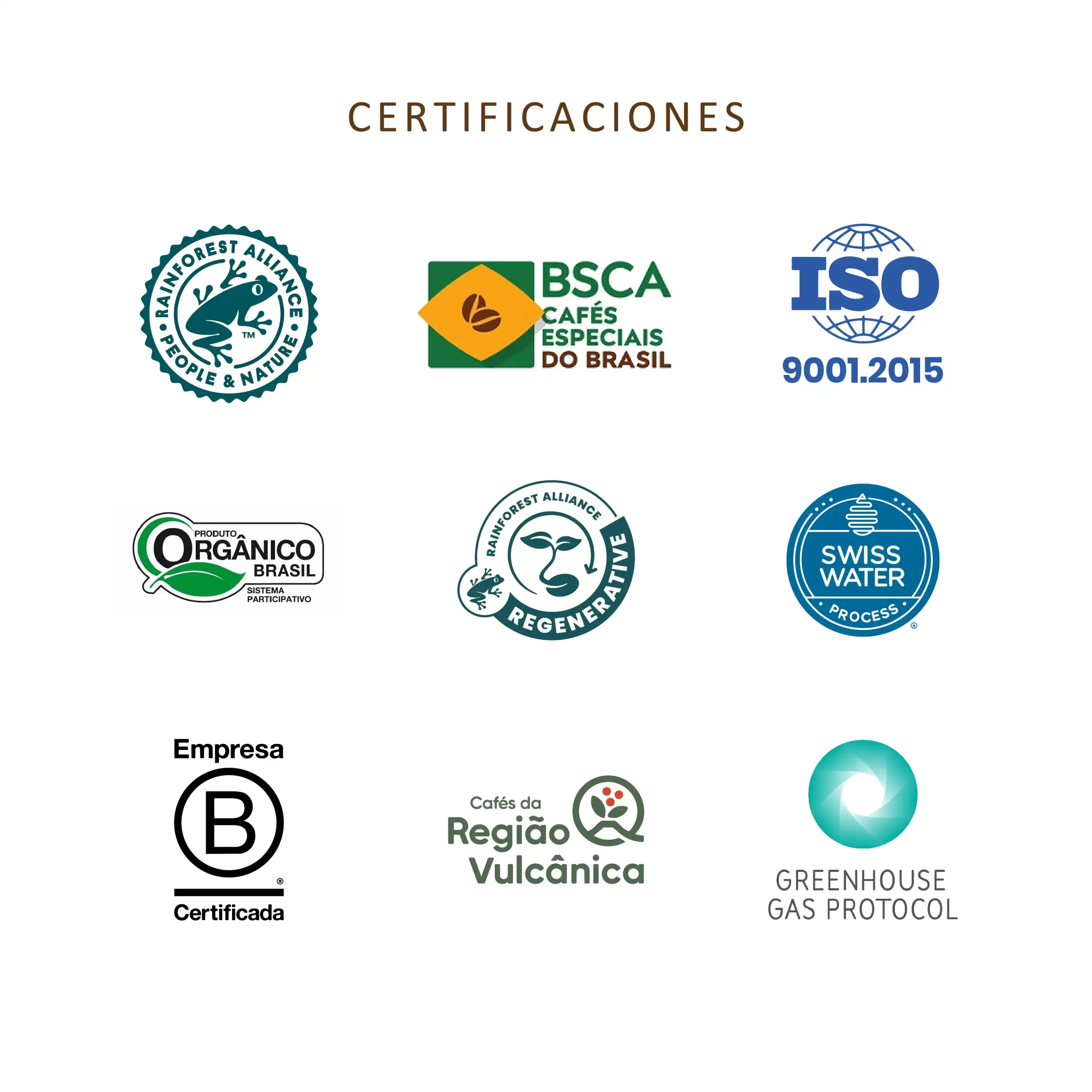 BSCA (Brazil Specialty Coffee Association): En 2023 Orfeu obtuvo el 1er lugar. Certifica la calidad y origen de cafés especiales de Brasil, garantizando altos estándares de producción y evaluación sensorial. (11 premios Aroma BSCA).