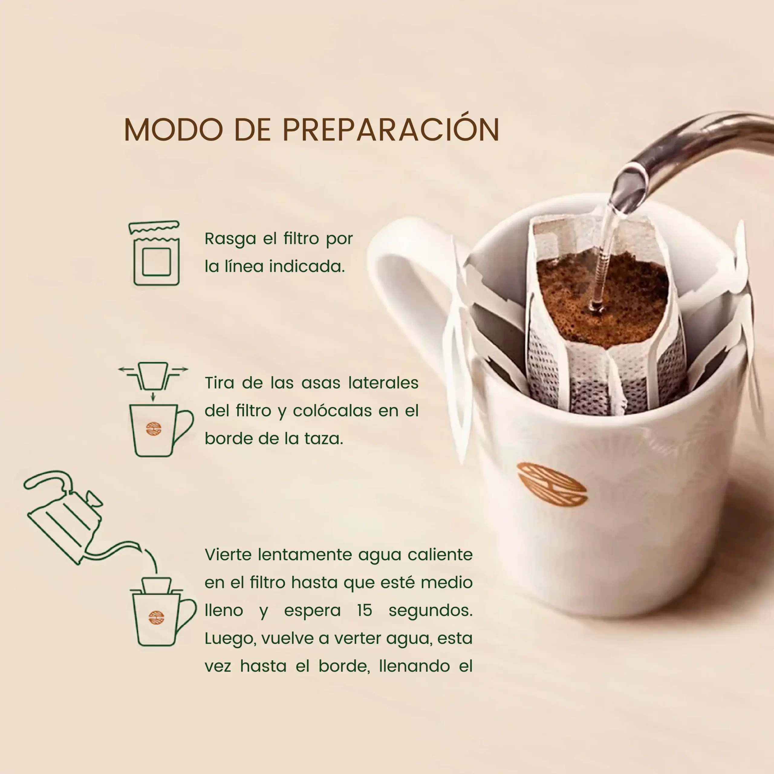 Disfruta un café de especialidad de forma práctica en cualquier lugar con Orfeu Drip. Sigue estos simples pasos: