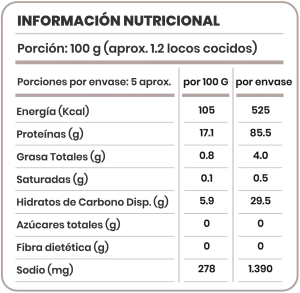 - 300 gr de locos o 2 a 3 unidades de locos cocidos y cortados en cuadros