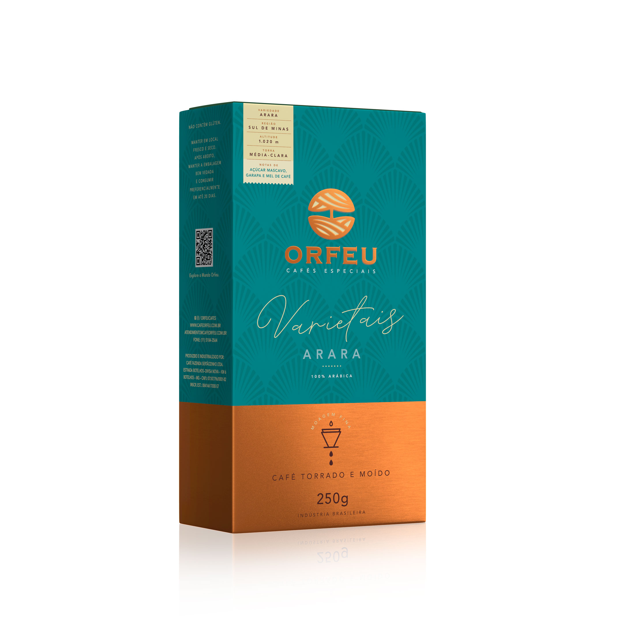 Con más de 70 años de tradición, el café Orfeu se cultiva en sus fincas Sertãozinho (1.000 a 1.300 metros), Cachoeira (1.000 a 1.150 metros) y Rainha (1.100 a 1.570 metros), ubicadas en regiones de suelo volcánico y altitudes ideales en Minas Gerais y Mogiana Paulista.