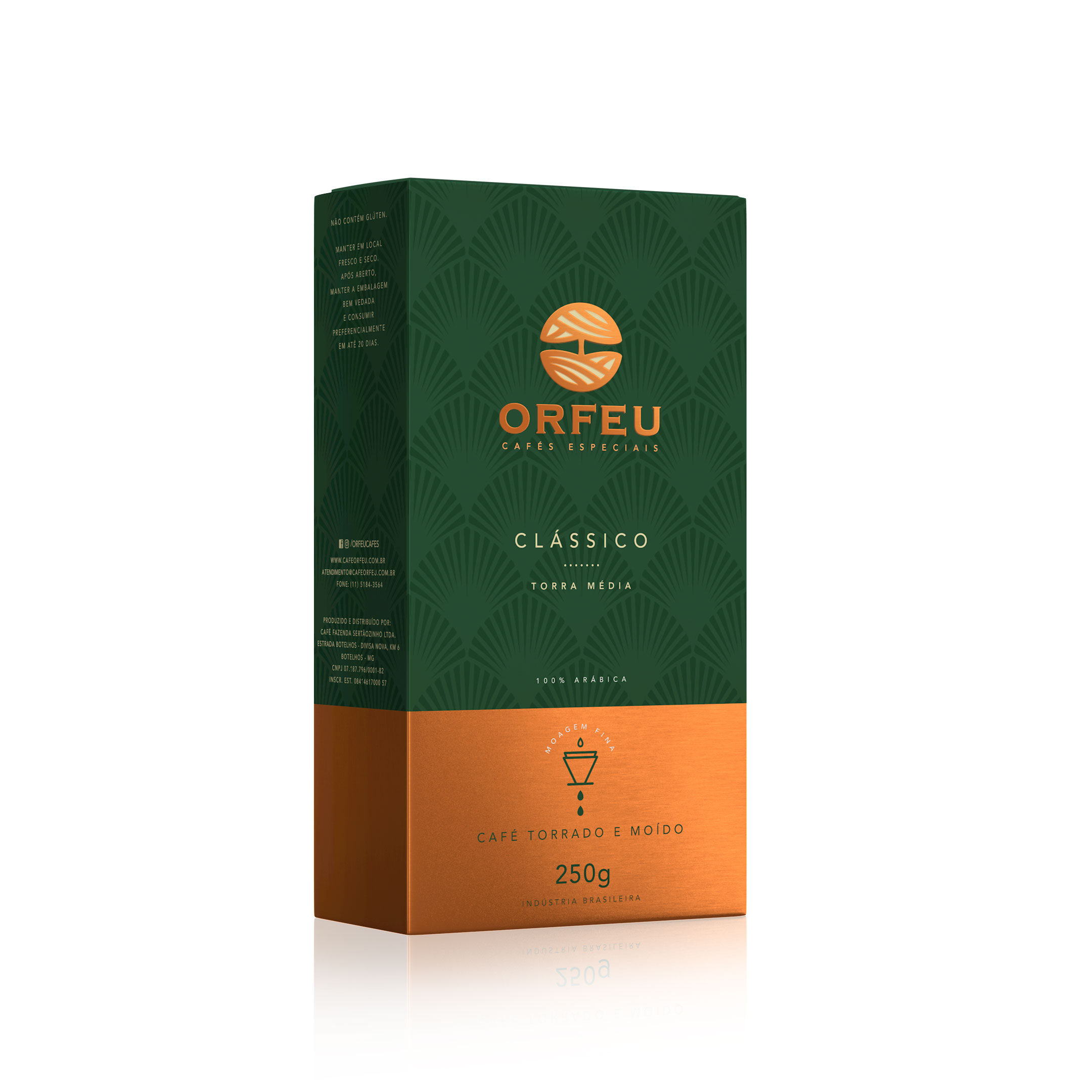 Con más de 70 años de tradición, el café Orfeu se cultiva en sus fincas Sertãozinho (1.000 a 1.300 metros), Cachoeira (1.000 a 1.150 metros) y Rainha (1.100 a 1.570 metros), ubicadas en regiones de suelo volcánico y altitudes ideales en Minas Gerais y Mogiana Paulista.