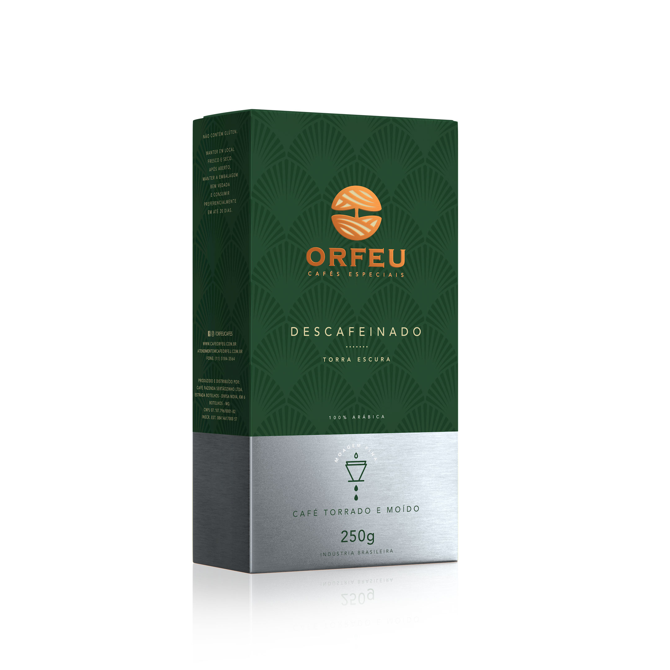 Con más de 70 años de tradición, el café Orfeu se cultiva en sus fincas Sertãozinho (1.000 a 1.300 metros), Cachoeira (1.000 a 1.150 metros) y Rainha (1.100 a 1.570 metros), ubicadas en regiones de suelo volcánico y altitudes ideales en Minas Gerais y Mogiana Paulista.